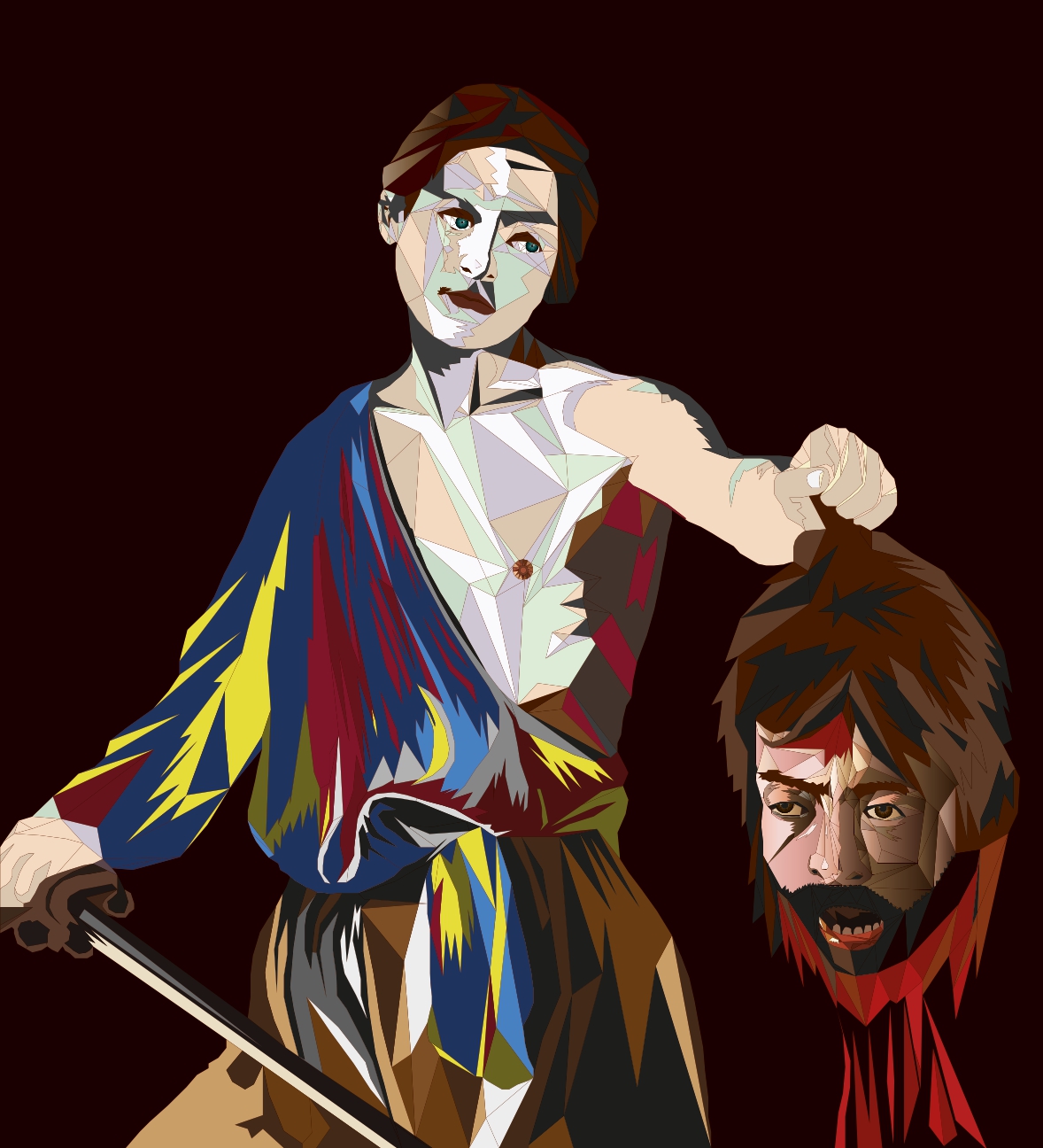 La testa mozzata di Golia si innalza a simbolo della chiusura di un devastante ciclo: la colpa di fallimenti ed errori passati è così espiata e, quel sangue che scorre via, caldo, avvolgente e sconvolgente quanto l’espressione facciale dello stesso, tutto cancella.