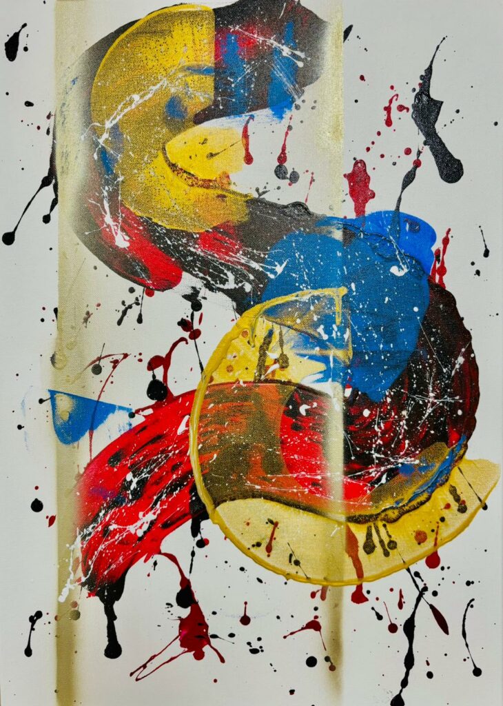 “Orbite del possibile” di Erika Berra si fonda su un equilibrio mobile, in cui gli elementi convivono senza mai annullarsi. Qui, il colore evolve in linguaggio primario che si stratifica.