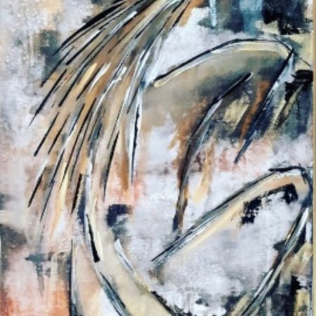 “Orbite del possibile” di Erika Berra si fonda su un equilibrio mobile, in cui gli elementi convivono senza mai annullarsi. Qui, il colore evolve in linguaggio primario che si stratifica. L’oro, dominante, è una soglia luminosa, uno spazio mental…